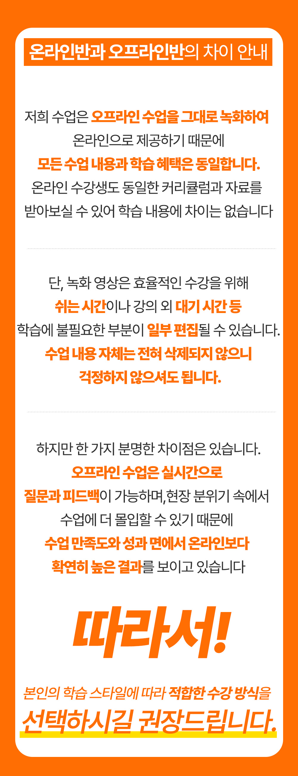 회원 귀책: 수강 신청 시 기재한 연락처 오류로 인한 안내 실패 및 대응 지연에 따른 불이익은 회원의 과실로 간주하며 회사는 책임지지 않습니다.